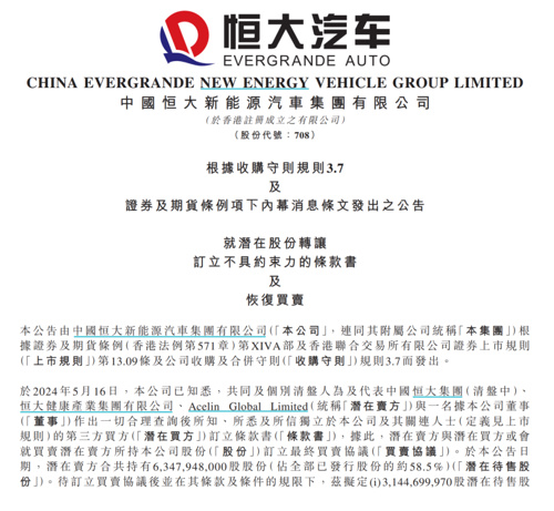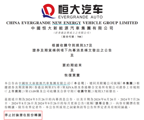【导读】终止股份转让,恒大汽车复牌后暴跌超20%
