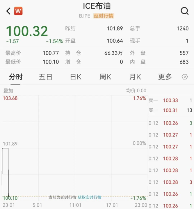 原油价格早盘下跌,布伦特原油跌破101美元/桶,日内跌1.54%。