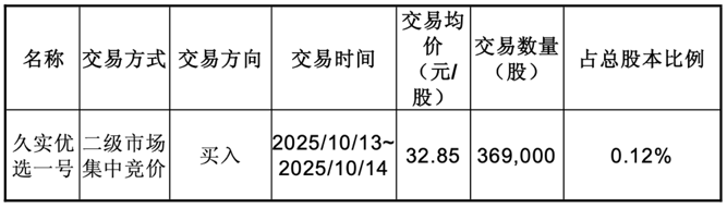 据了解,此次增持股份的资金来源为自有资金。公告显示,截至本报告书签署日,久实投资除本次权益变动外,在未来12个月内尚未有明确计划、协议或安排增加或减少其在上市公司中拥有权益的股份。