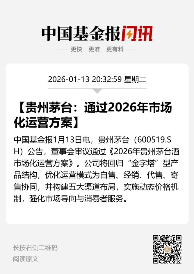 1月13日晚间,贵州茅台(证券代码:600519)发布公告称,公司当日召开董事会会议,审议通过了《2026年贵州茅台酒市场化运营方案》。