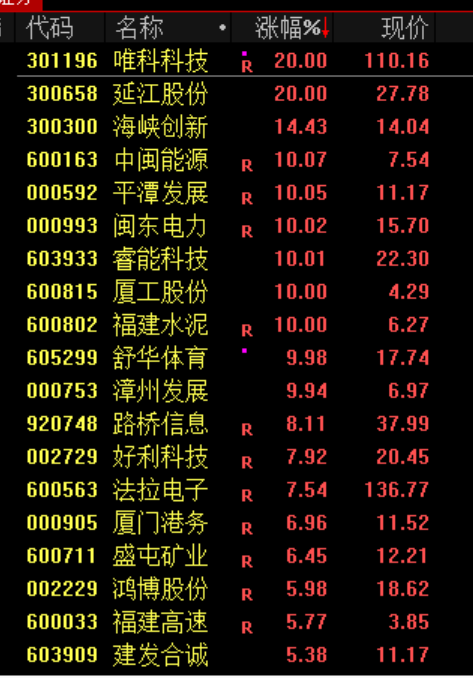 福建本地股尾盘异动,平潭发展、福建水泥、漳州发展等涨停。