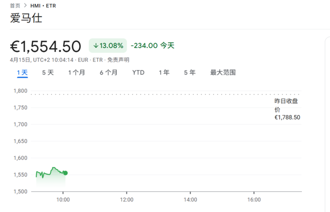 爱马仕股价暴跌13%,创下有记录以来最大盘中跌幅。开云集团下跌10%。两家公司业绩还拖累整个奢侈品板块。