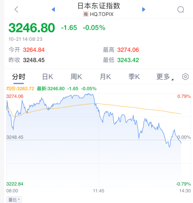 CPO等算力硬件股继续走强,汇绿生态涨停,新易盛涨超10%。10月21日,日本股市大起大落,日元走弱,此前高市早苗在关键的国会投票中胜出并出任首相,为进一步财政支出铺平道路。盘面震荡中,日经225指数一度下跌0.1%,因部分投资者对此前押注其刺激政策的仓位迅速获利了结;该指数盘中一度涨近1.6%,逼近具有心理意义的5万点关口。东证指数转跌。