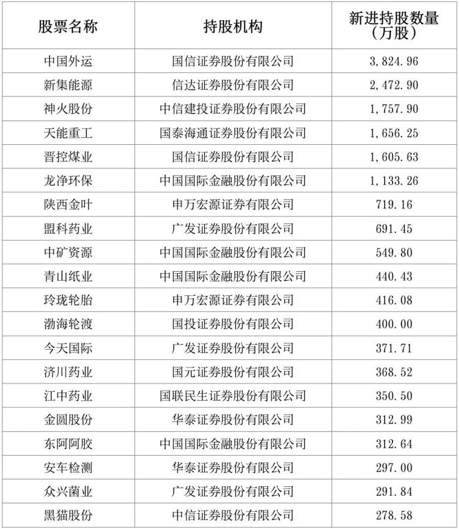 从其他券商三季度新进个股看,新集能源、神火股份、天能重工、晋控煤业、龙净环保等新进股份数量均超1000万股。