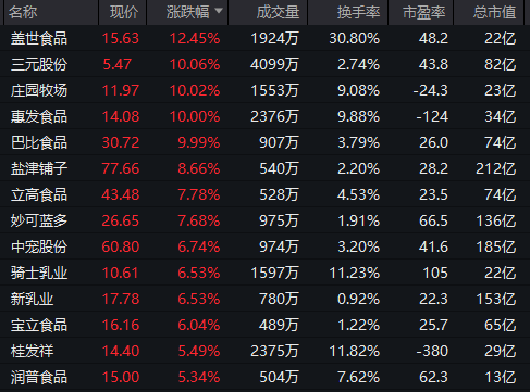 此外,东百集团、锦江酒店、国光连锁、三元食品、惠发食品、巴比食品等多股涨停。