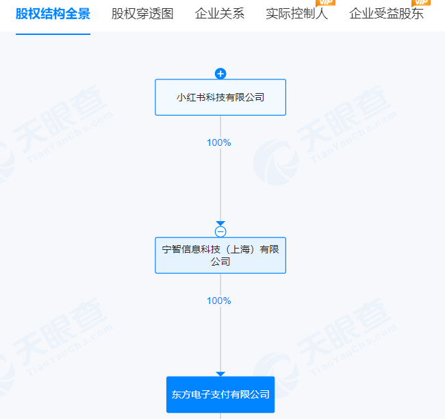 股权结构显示,宁智信息为小红书科技有限公司旗下子公司,这意味着,小红书已获得支付牌照。