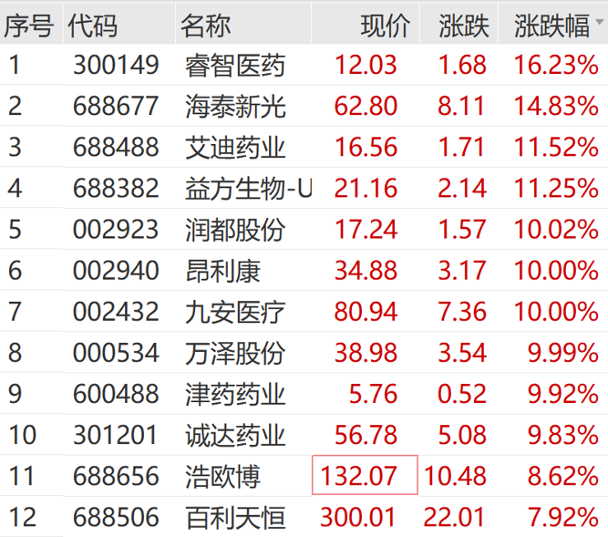 医药生物板块续涨