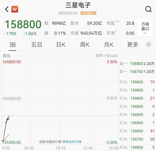 权重股方面,三星电子开盘跌超3%,随后直线拉升。三星电子2025年第四季度营业利润为20.1万亿韩元,同比增长209%,创下历史新高。