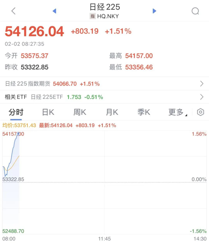 2月2日,日韩股市涨跌不一,日经225指数高开后快速拉升,截至发稿涨超1.5%。日本东证指数日内涨幅同样扩大至1%。