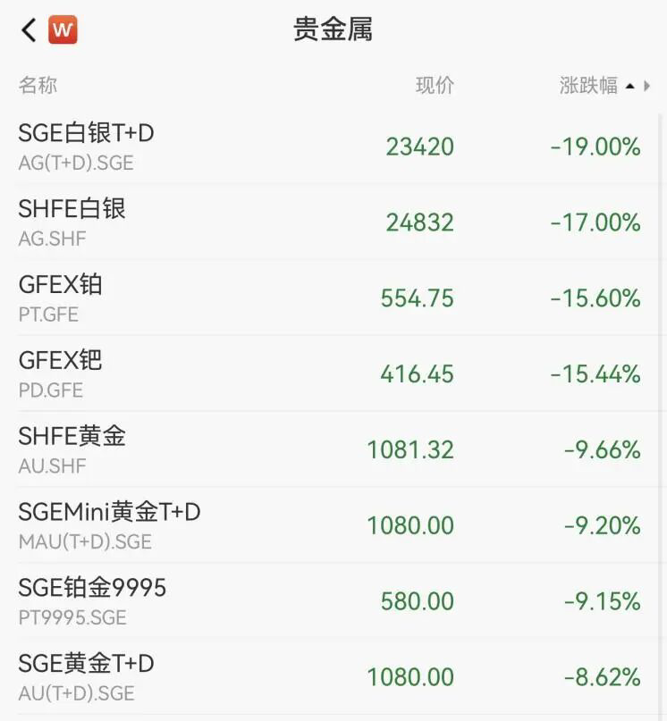 2月2日,国内贵金属期货开盘普跌,沪银主力合约跌停,铂、钯跌超15%,沪金、沪锡跌超9%。