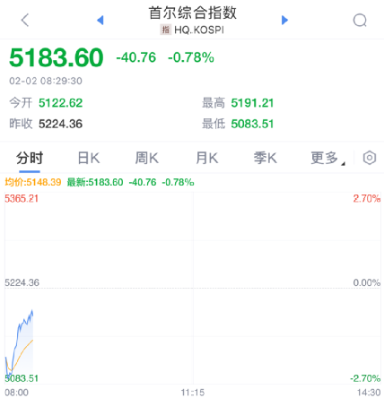 此外,韩国综合股价指数开盘大跌超2%,随后震荡拉升,跌幅不断收窄。
