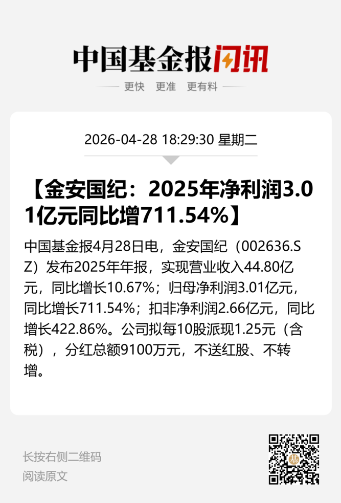 【导读】金安国纪公布2025年及2026年一季度业绩