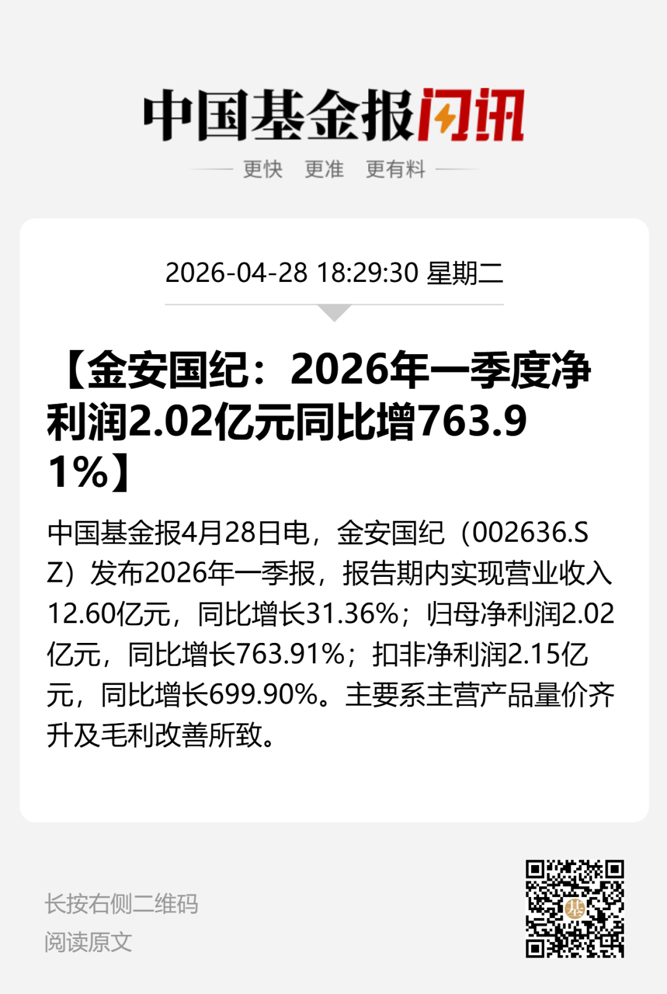 4月28日晚间,国内覆铜板龙头企业金安国纪(证券代码:002636)披露2025年年度报告及2026年一季度报告,业绩持续高速增长。