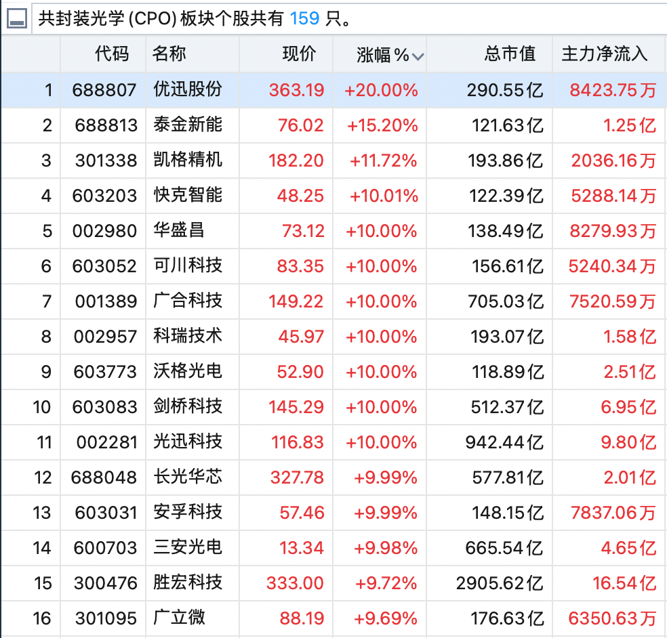 CPO板块全面爆发