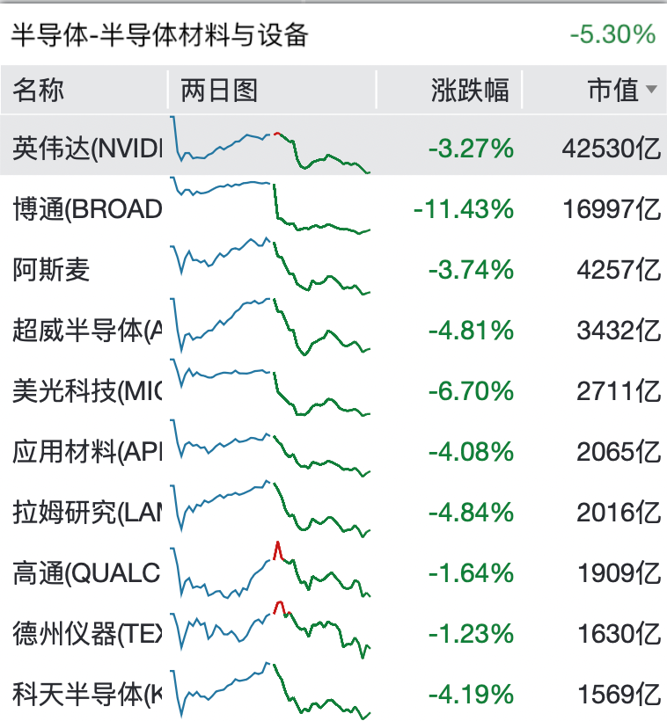 板块方面,昨夜今晨科技股普跌,博通跌超11%,美光科技跌逾6%,英伟达跌超3%。