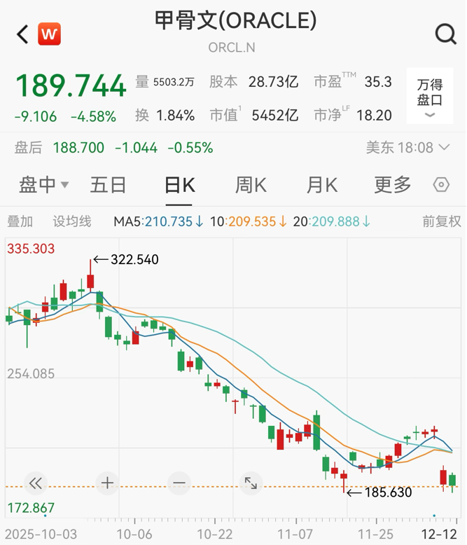 回应发布后,甲骨文股价收复部分失地,但仍收跌4.58%,盘后保持微跌走势。