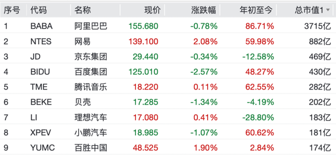 中概股多数下跌,纳斯达克中国金龙指数跌0.3%。个股方面,亿鹏能源跌超12%,阿特斯太阳能跌超10%,大全新能源跌逾6%,小马智行跌5.6%,爱奇艺跌超4%,百度跌2.57%。