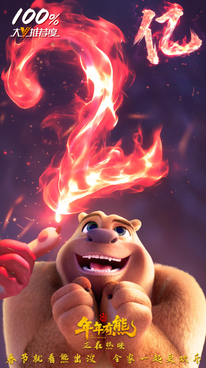 《熊出没·年年有熊》作为热门亲子电影,目前票房突破2.6亿元,排在第三位。