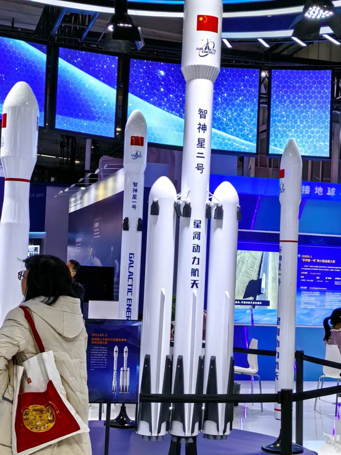 星河动力集中展示了其“智神星”系列中型重复使用液体运载火箭和“谷神星”系列轻小型固体运载火箭模型。