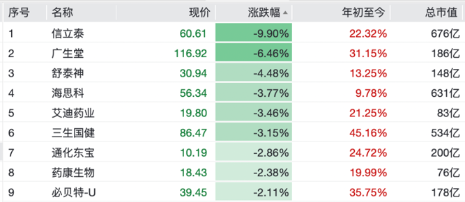 创新药概念股回调,多只个股下挫,其中,信立泰跌9.9%,广生堂跌超6%,舒泰神、海思科、艾迪药业、三生国健等均跌超3%。