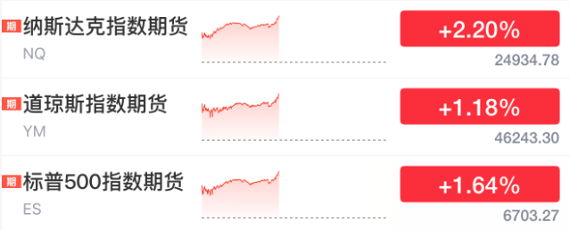 受此影响,美股三大股指期货大幅上涨。