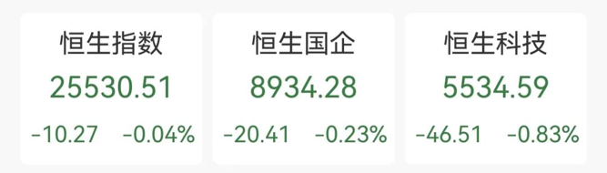 12月11日,港股高开低走,恒生指数微跌0.04%,报25530.51点;恒生科技指数下挫0.83%,报5534.59点;恒生中国企业指数下跌0.23%,报8934.28点。市场成交额为1824.77亿港元,较前一交易日的1933.92亿港元有所减少。