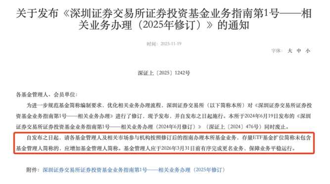 深交所也发布《深圳证券交易所证券投资基金业务指南第1号——相关业务办理(2025年修订)》,对这一事项进行了统一部署。