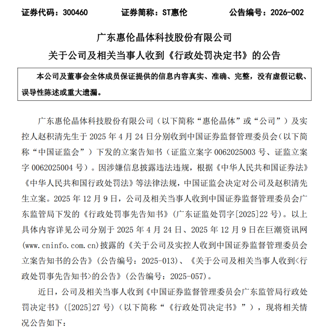 ST惠伦,罚单正式落地!