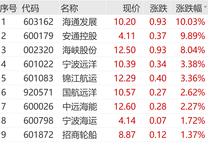 另外,上午航运板块走高,海通发展、安通控股双双涨停,海峡股份涨超8%。
