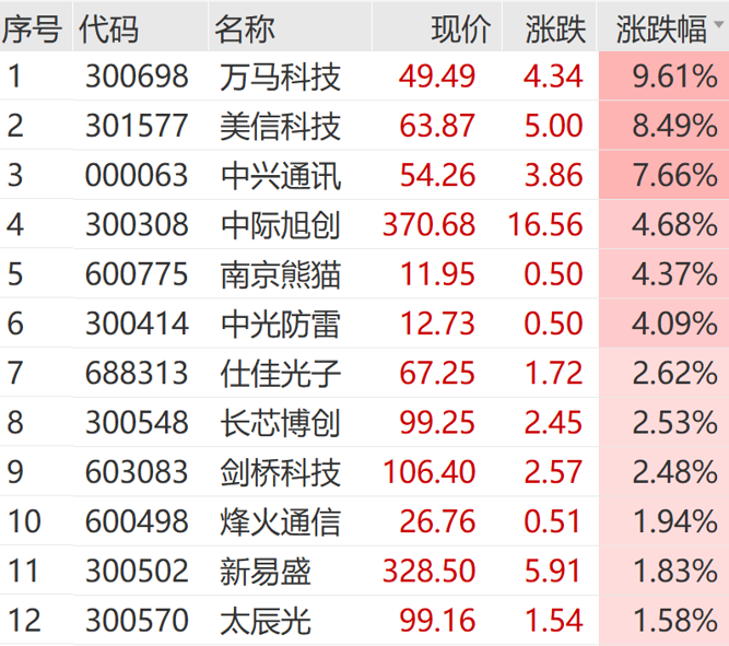 10月16日上午,通信板块整体走高,万马科技、美信科技、中际旭创等多股大涨。