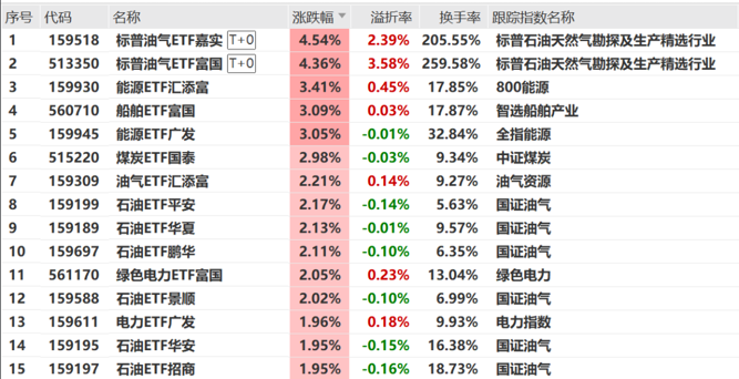 【导读】油气、能源ETF“霸屏”涨幅榜