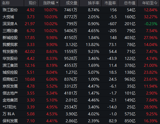 房地产板块震荡反弹,大悦城、珠江股份、三湘印象、我爱我家均直线拉涨停,特发服务、滨江集团、京投发展等跟涨。