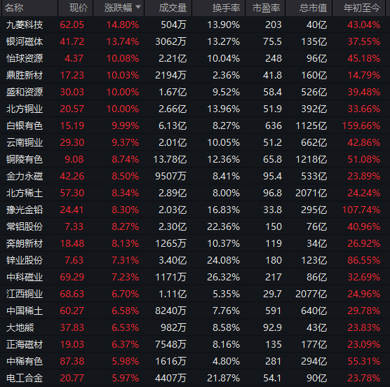 有色板块盘中下探回升,铜方向领涨,北方铜业实现2连板,怡球资源、鼎胜新材、白银有色等涨停。