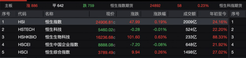 个股方面,比亚迪电子涨6.15%,信义光能涨5.06%,创科实业涨4.35%;银河娱乐跌2.90%,中通快递-W跌2.38%,携程集团-S跌2.28%。