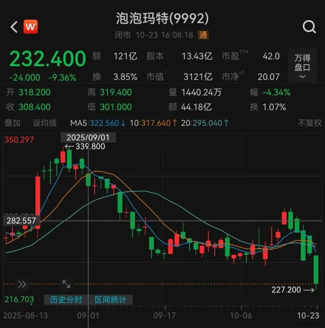 泡泡玛特重挫