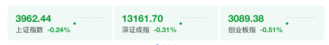 11月18日早盘,A股三大股指集体低开,沪指开盘报3962.44点,跌0.24%;深证成指跌0.31%,创业板指跌0.51%。
