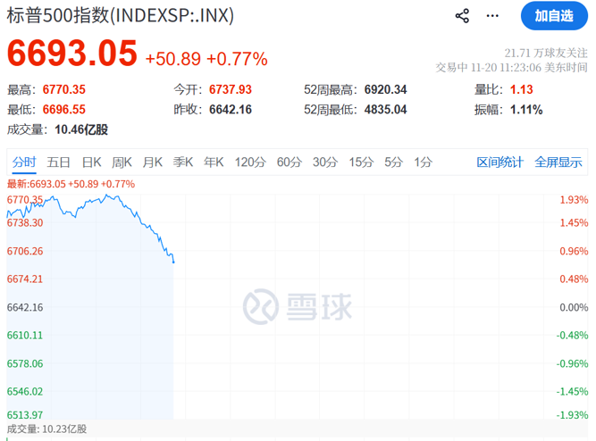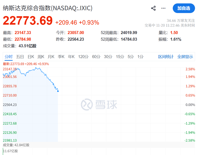 英伟达股价一度跳涨约5%,随后股价大幅回落。截至发稿,涨幅仅有1.39%。公司盈利和收入均显著超出华尔街预期,同时给出了强于预期的第四季度销售指引。英伟达首席执行官黄仁勋表示,市场对其当前一代Blackwell芯片的需求“爆棚”,并再次否认AI正在形成泡沫。