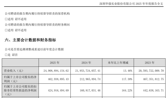 2025年,深圳华强的存储类产品线授权分销业务快速起量,归母净利润同比增长117.38%至4.63亿元,扣非后净利润同比增长164.22%至4.25亿元。