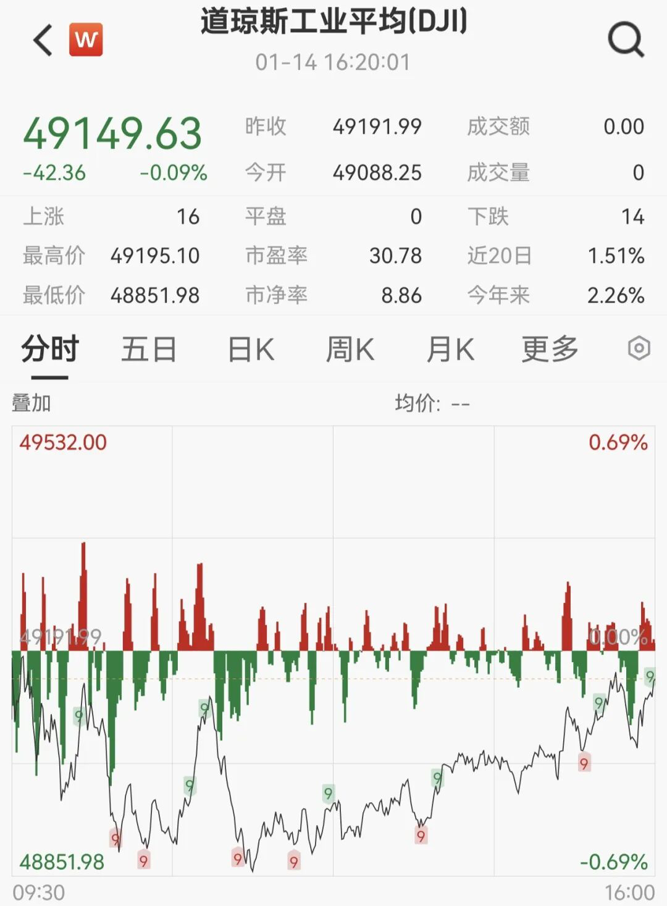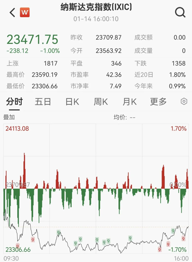 美国三大股指全线收跌,道指跌0.09%,标普500指数跌0.53%,纳指跌1%。