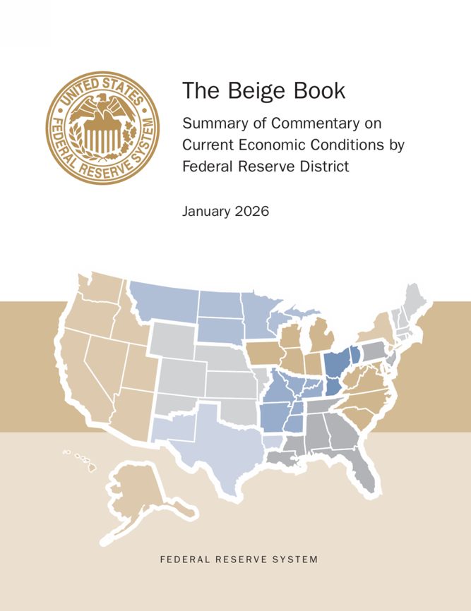 当地时间1月14日,美联储发布2026年首份《褐皮书》称,在十二个联邦储备区中,有八个区的整体经济活动以轻微至温和的速度增长;就业情况大多没有变化;绝大多数地区的价格以温和速度增长,关税带来的成本压力是所有地区的一致主题。