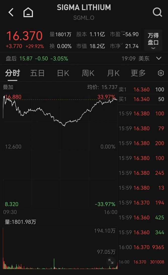 受该消息刺激,锂矿股上涨,全球领先的锂生产商Sigma Lithium涨近30%,富美实涨8%,雅保涨4.83%,智利矿业化工涨3.68%。