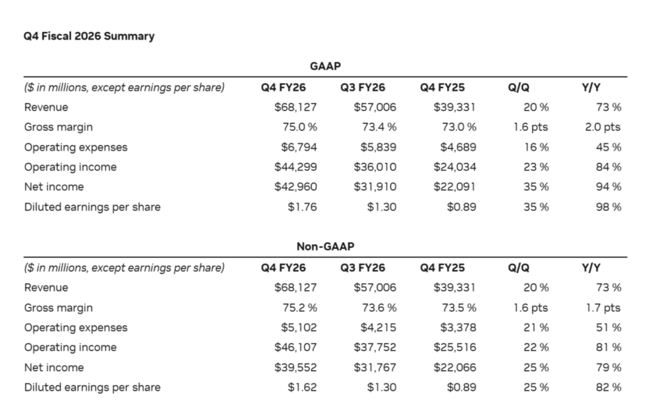 财报显示,英伟达该季度总营收为681.3亿美元,环比增长22%,同比增长75%,高于分析师预测的662亿美元的营收额;该季度每股盈利为1.62美元,超过华尔街分析师预计的每股1.53美元的水平。