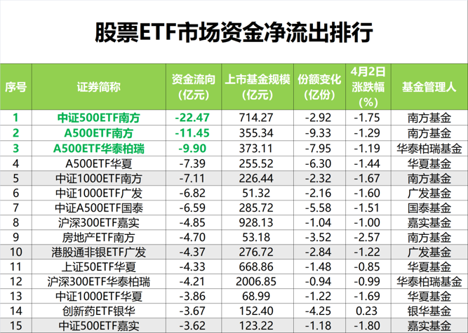 另外,中证500ETF南方、中证1000ETF广发等产品资金净流出也位居市场前列。