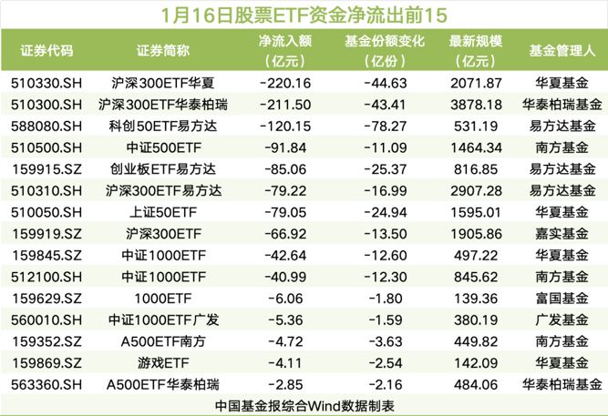 【导读】1月16日股票ETF资金净流出超855亿元