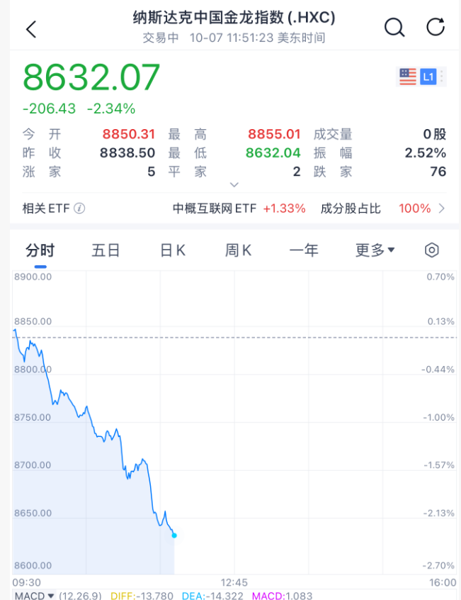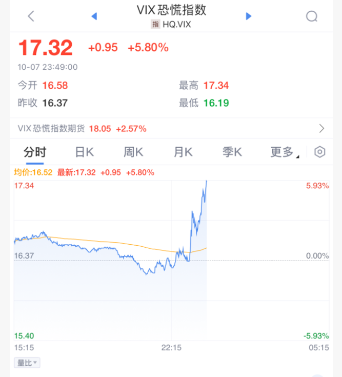 与此同时,受科技股跳水影响,中概股指数跌超2%,恐慌指数也直线拉升。
