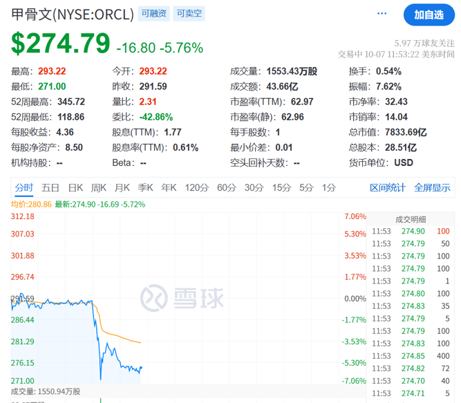 超威半导体公司(AMD)周一经历了这种“火箭式”上涨:在与OpenAI签署一项可能带来数十亿美元收入的协议后,该公司股价飙升,在盘中高位时市值一度增加约1000亿美元。AMD股价周二早盘一度续涨7.5%。在此之前,甲骨文公司上个月单日暴涨36%,其市值在一个交易日内增加了2550亿美元。原因是其云业务给出“爆表”指引,其中包括与OpenAI达成的一项为期五年、价值3000亿美元的协议。