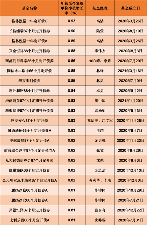 东方财富Choice数据显示,全市场共有269只摊余成本法债基(不同份额分开计算),其中有236只产品年内收益为正,21只产品年内涨幅超0.8%。