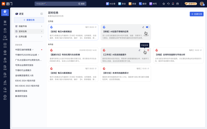 从会议预约、录音转写、纪要生成,到产业链分析、数据监控、报告撰写,再到团队协同、知识管理、决策支持。
