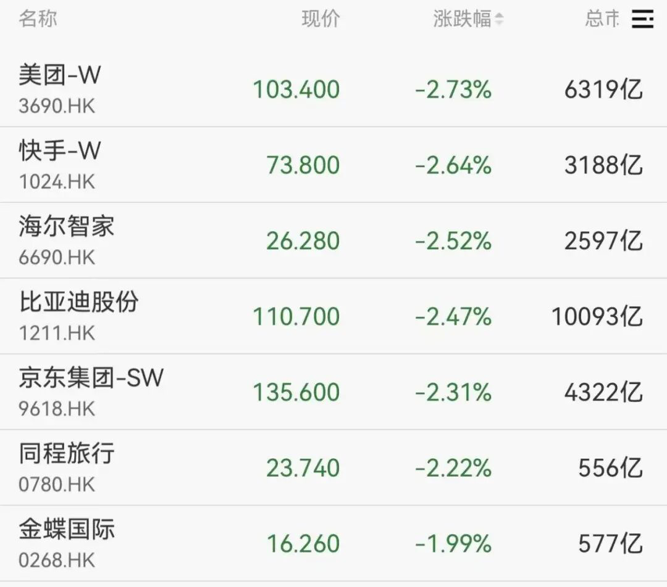 港股方面,三大指数纷纷走低,美团、快手、比亚迪股份跌超2%。