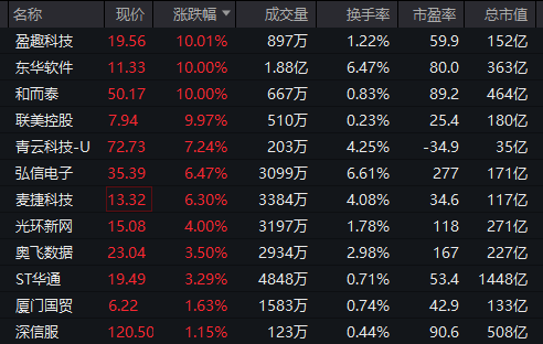 摩尔线程概念股大涨,盈趣科技、东华软件、和而泰、联美控股等涨停,青云科技、弘信电子、奥飞数据等跟涨。